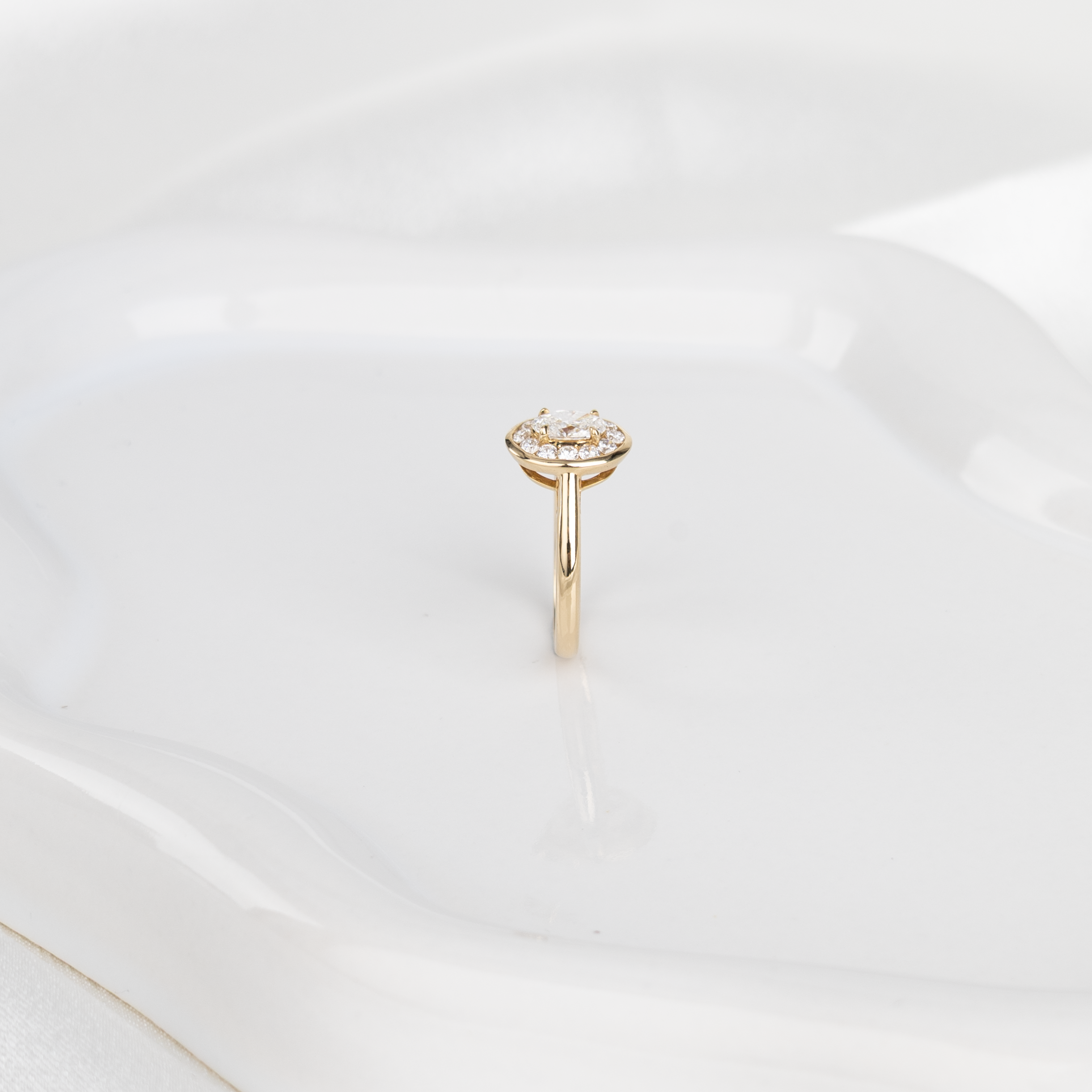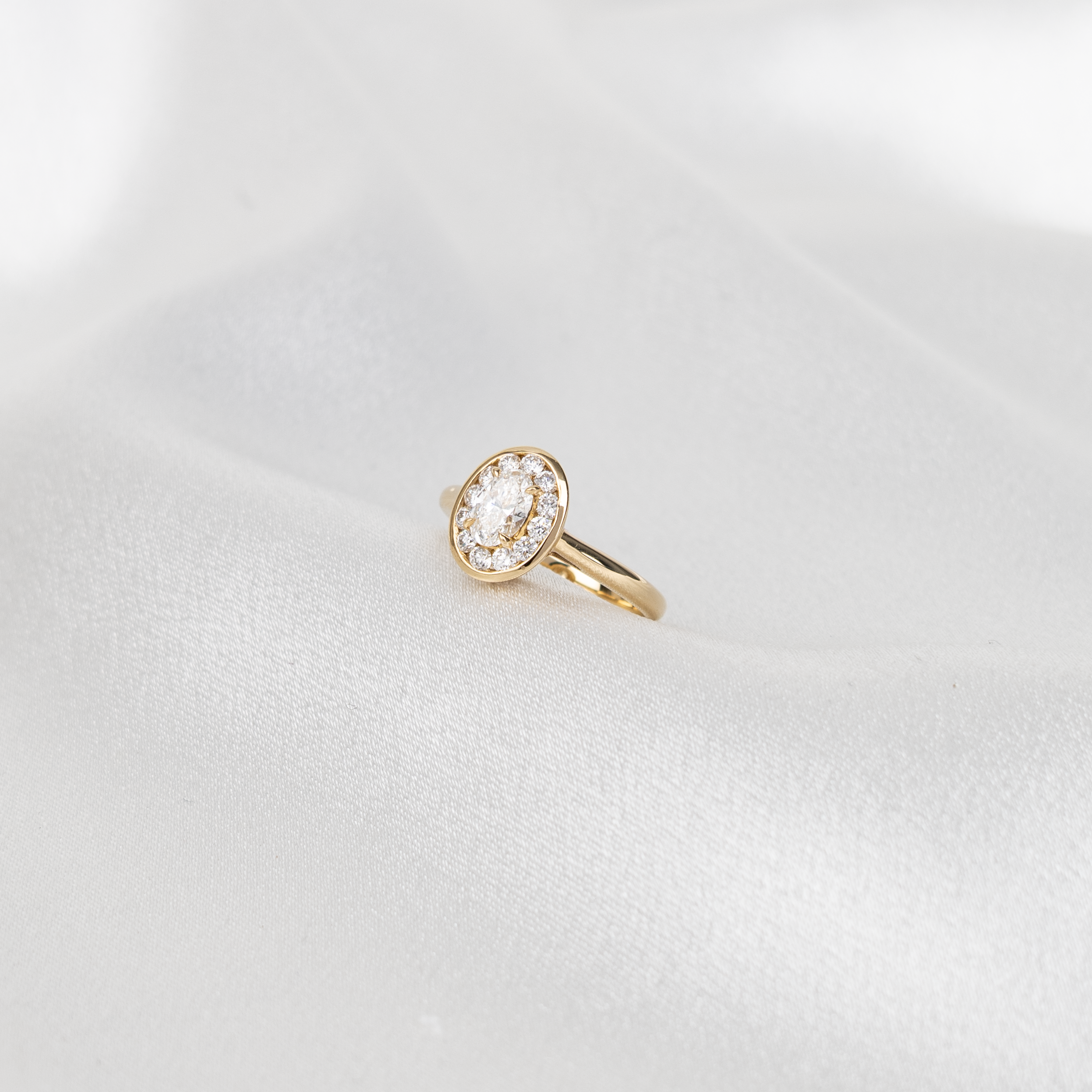 18K Yellow Gold Oval Lab Diamond Cluster Ring: Antique Style Engagement
