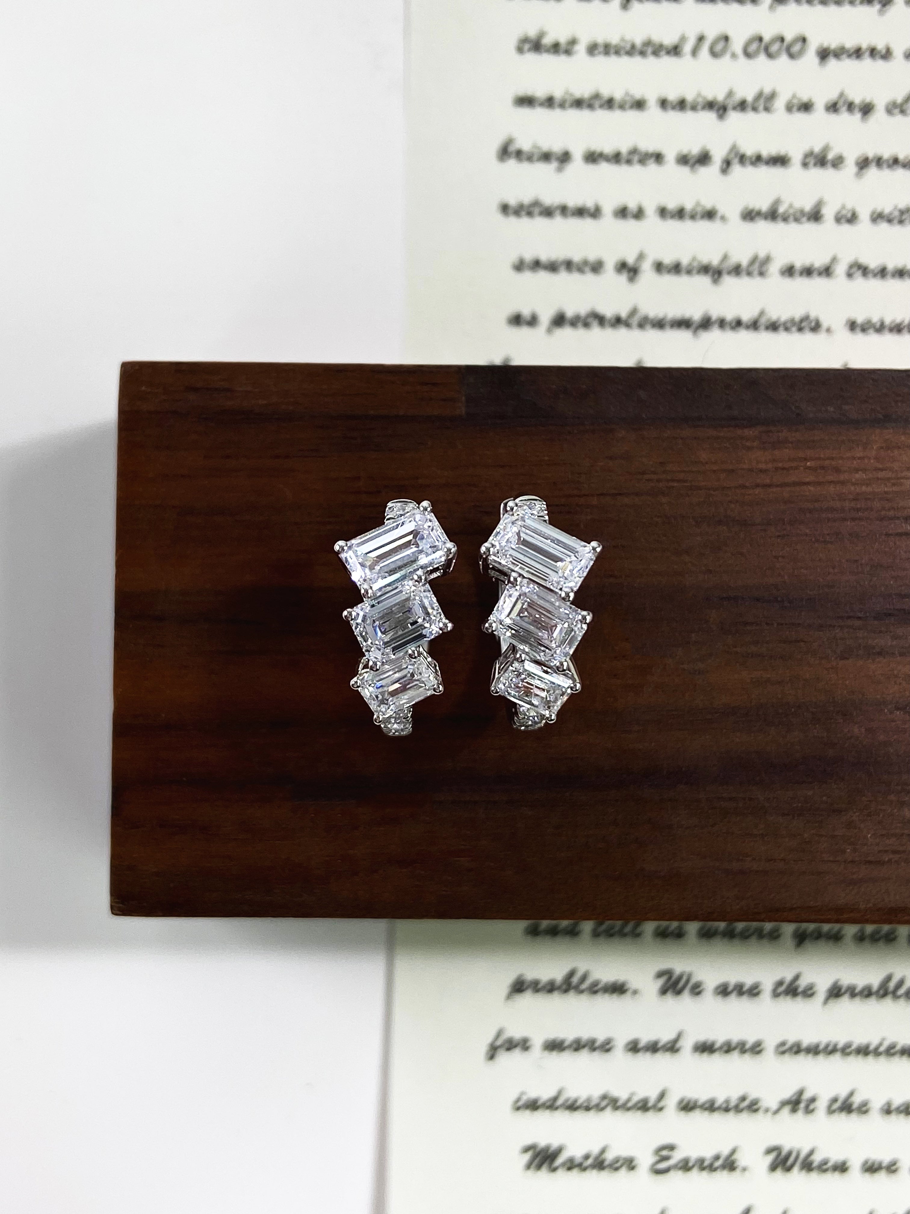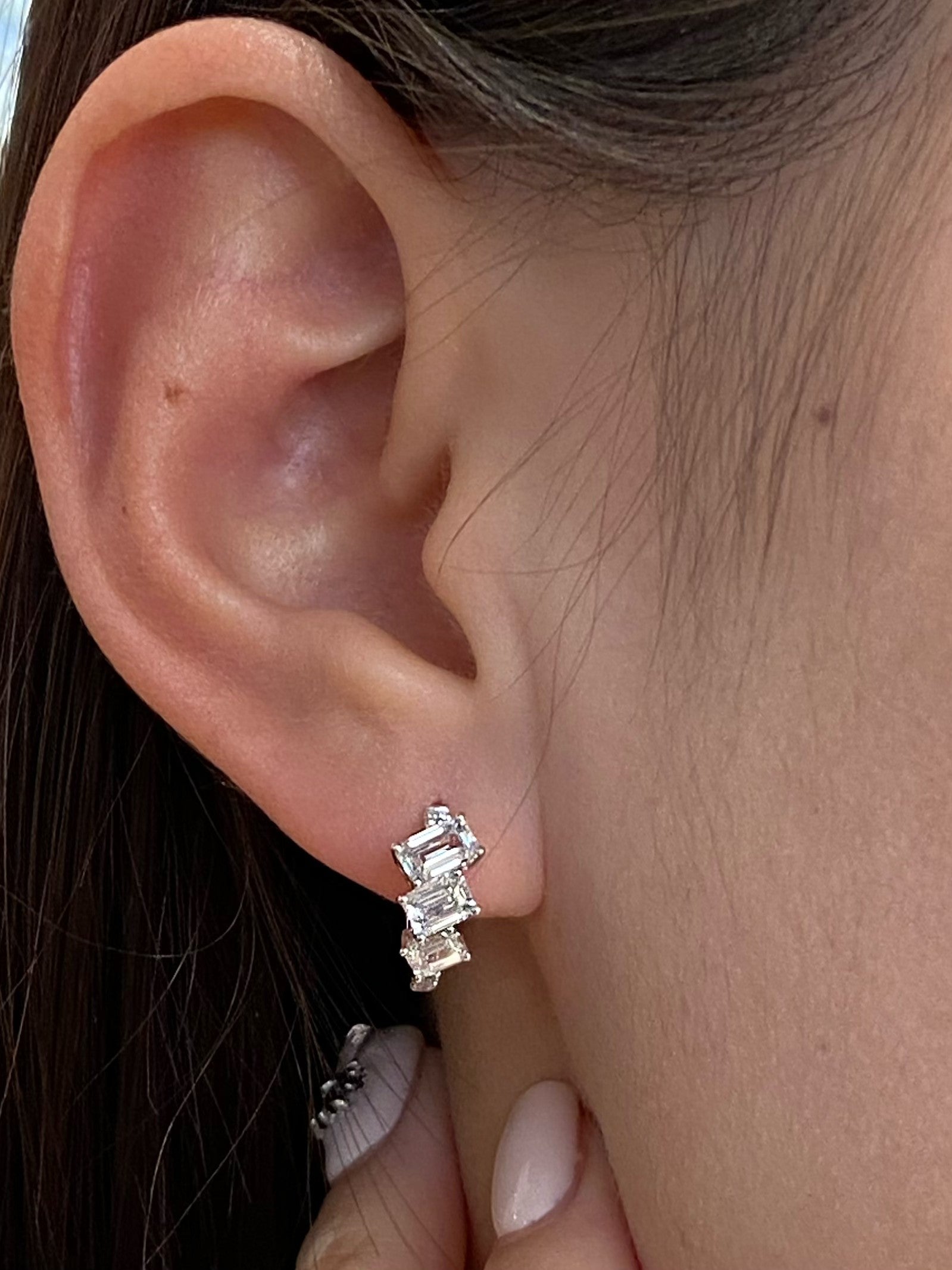1.45 Carat Emerald Cut Lab Grown Diamond Earrings,IGI Certificate