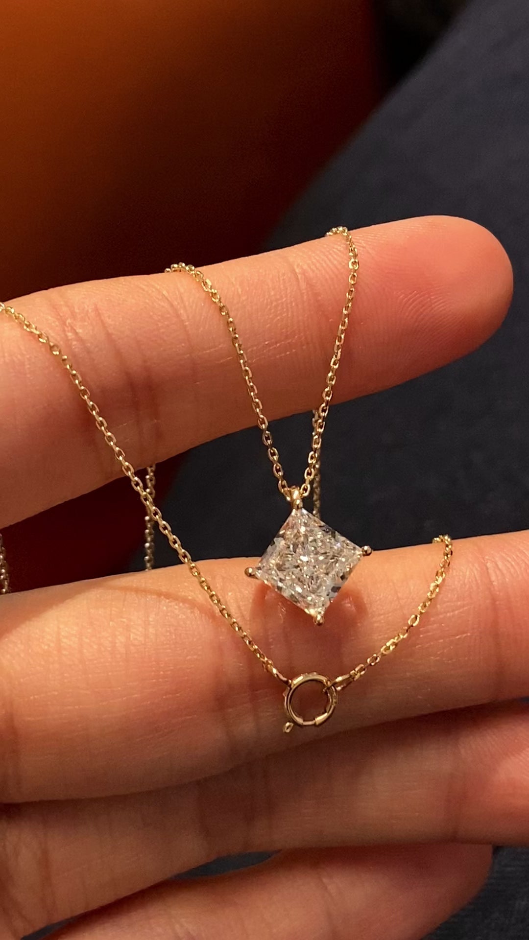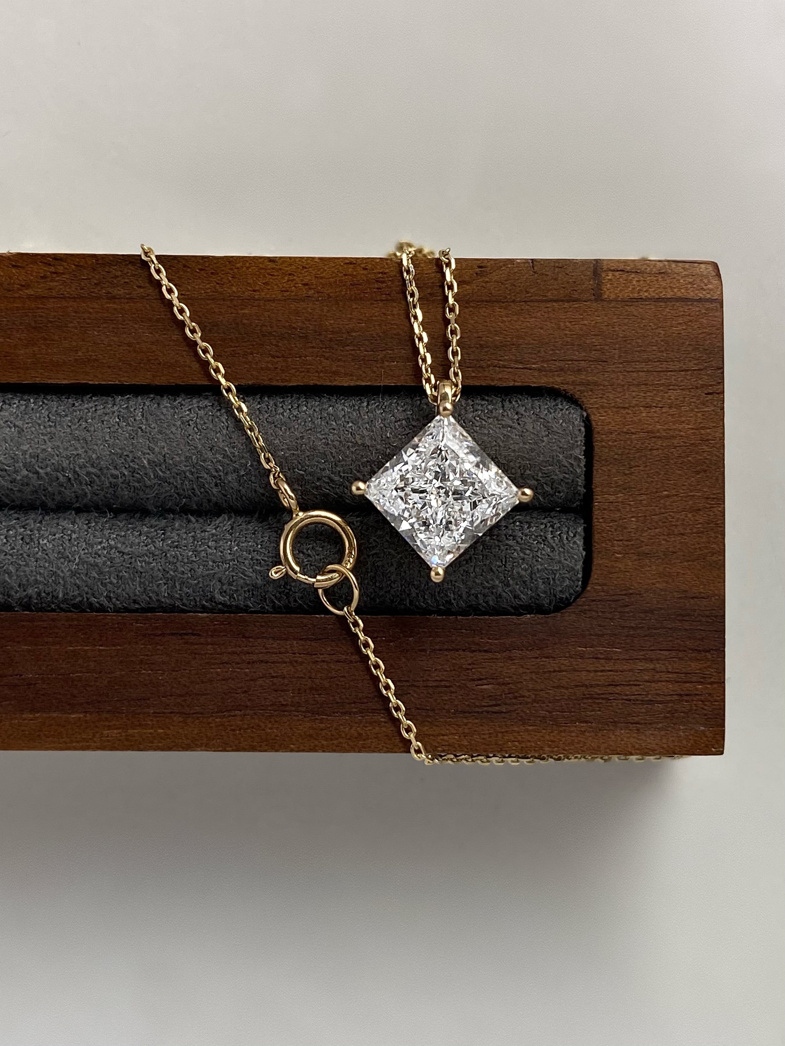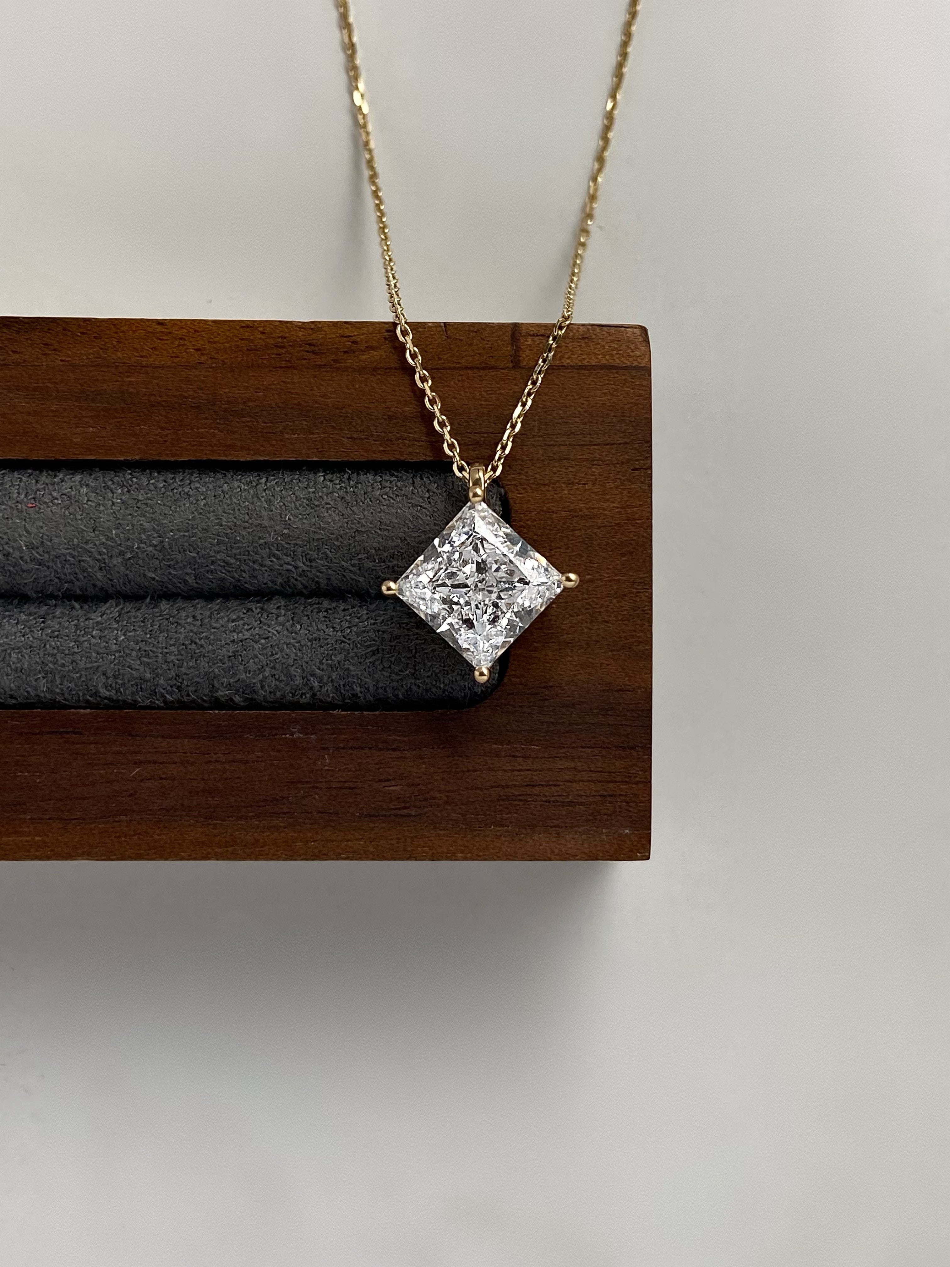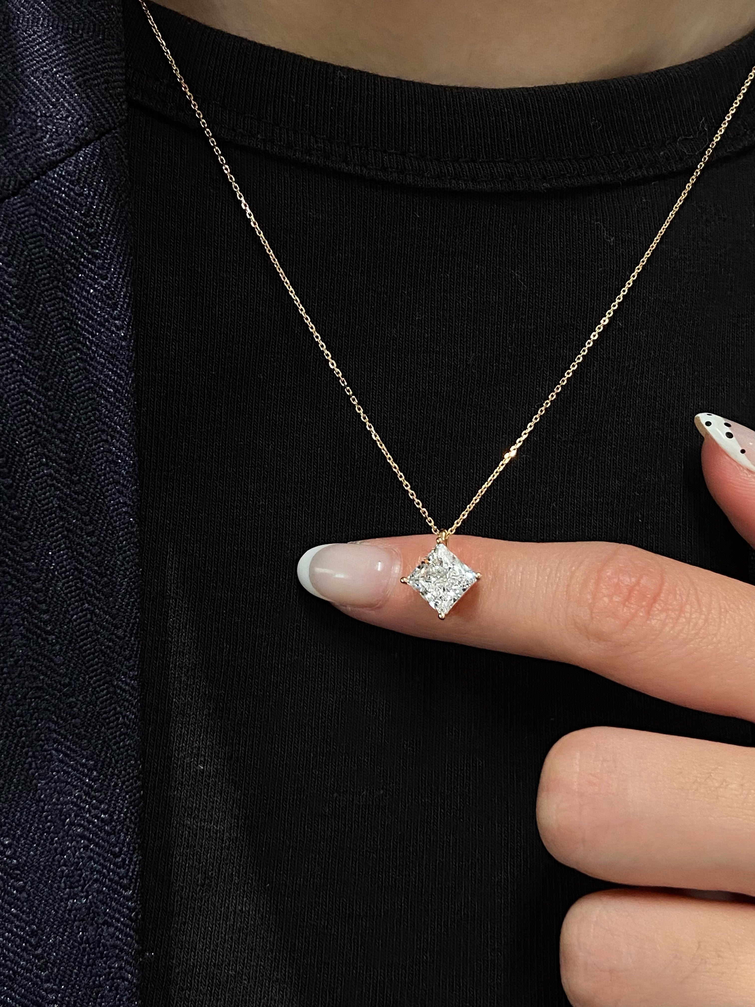 2 Carat 14K Yellow Gold Princess Cut Lab Grown Diamond Necklace, Solitaire Necklace,