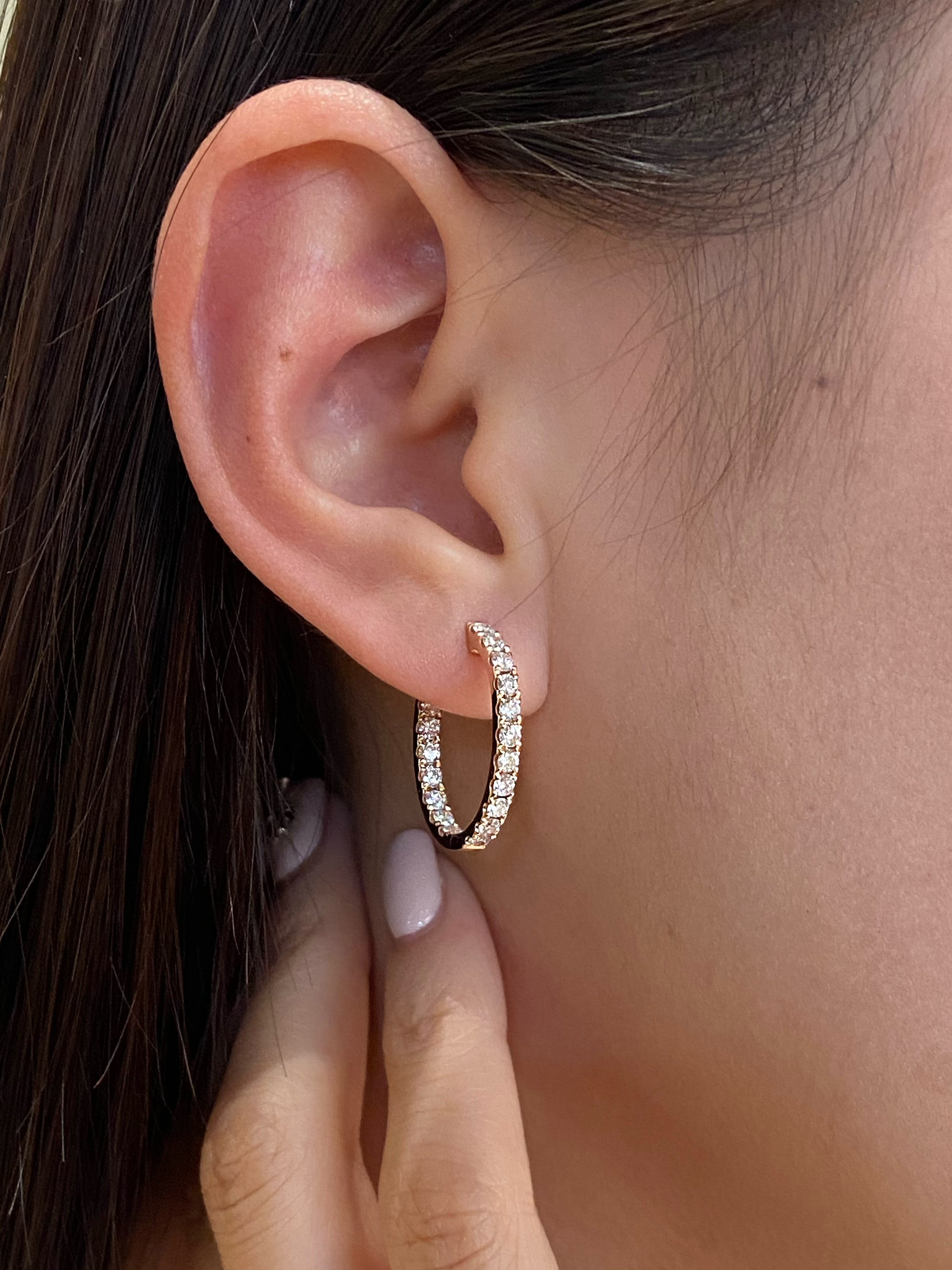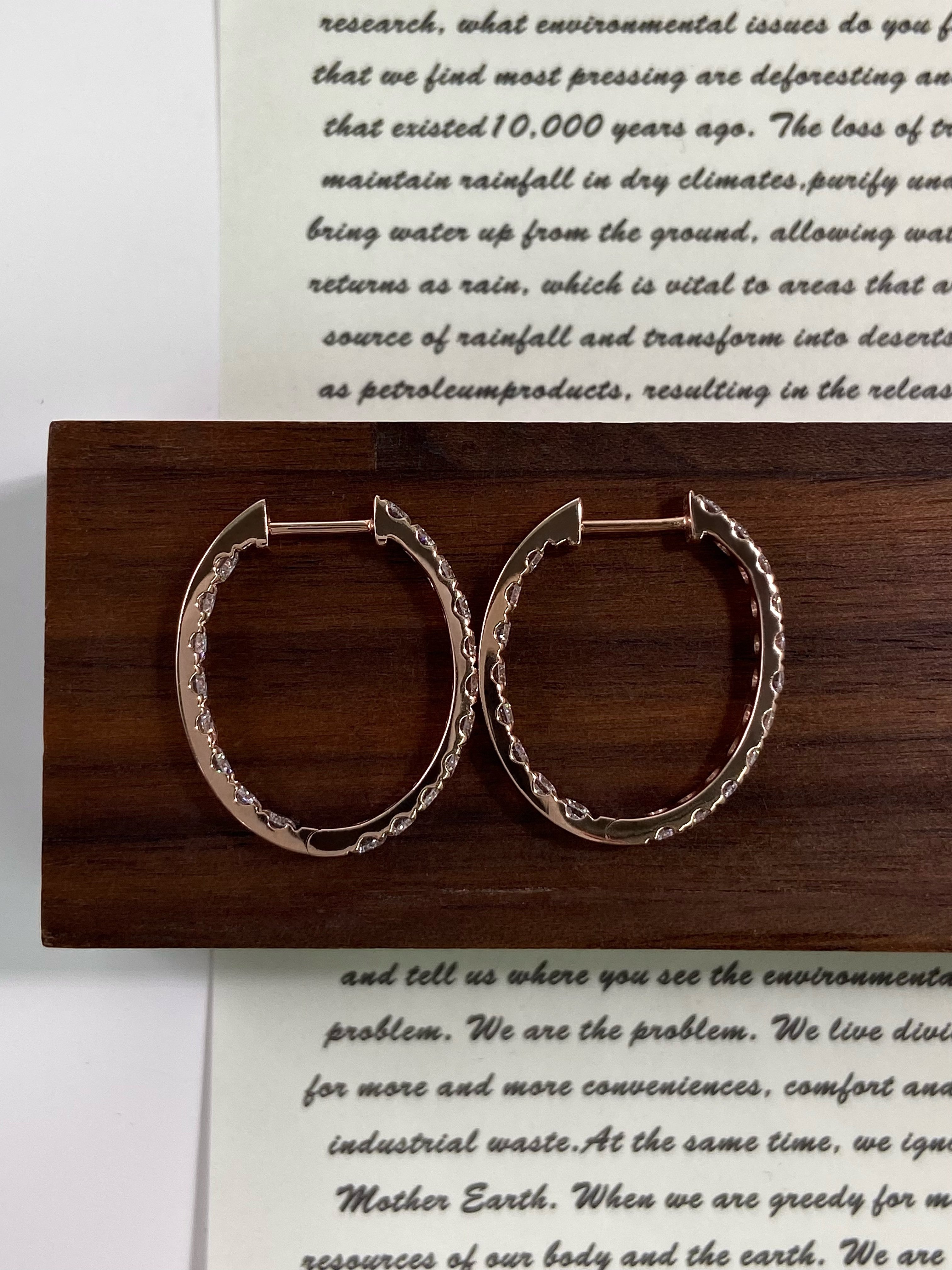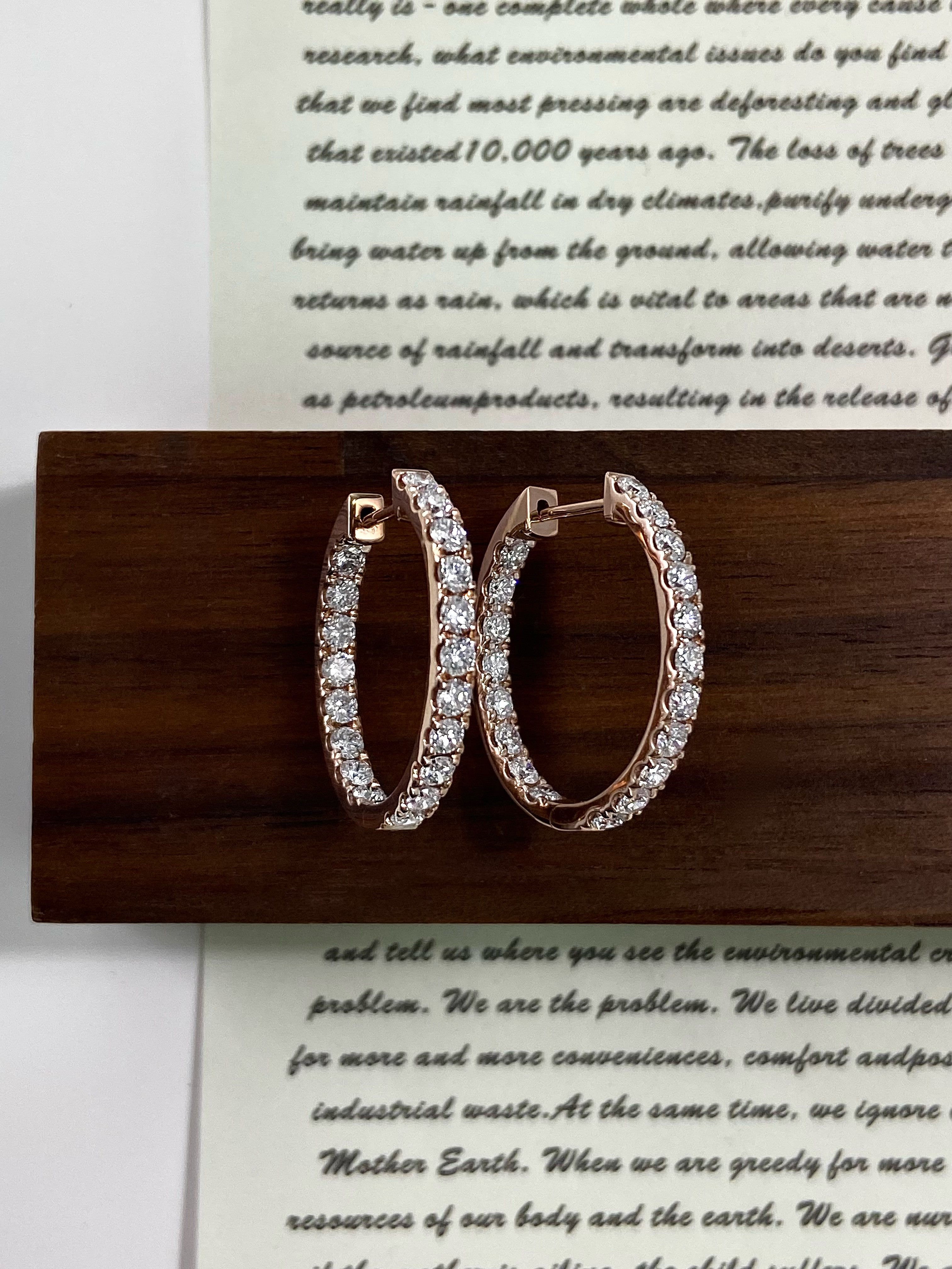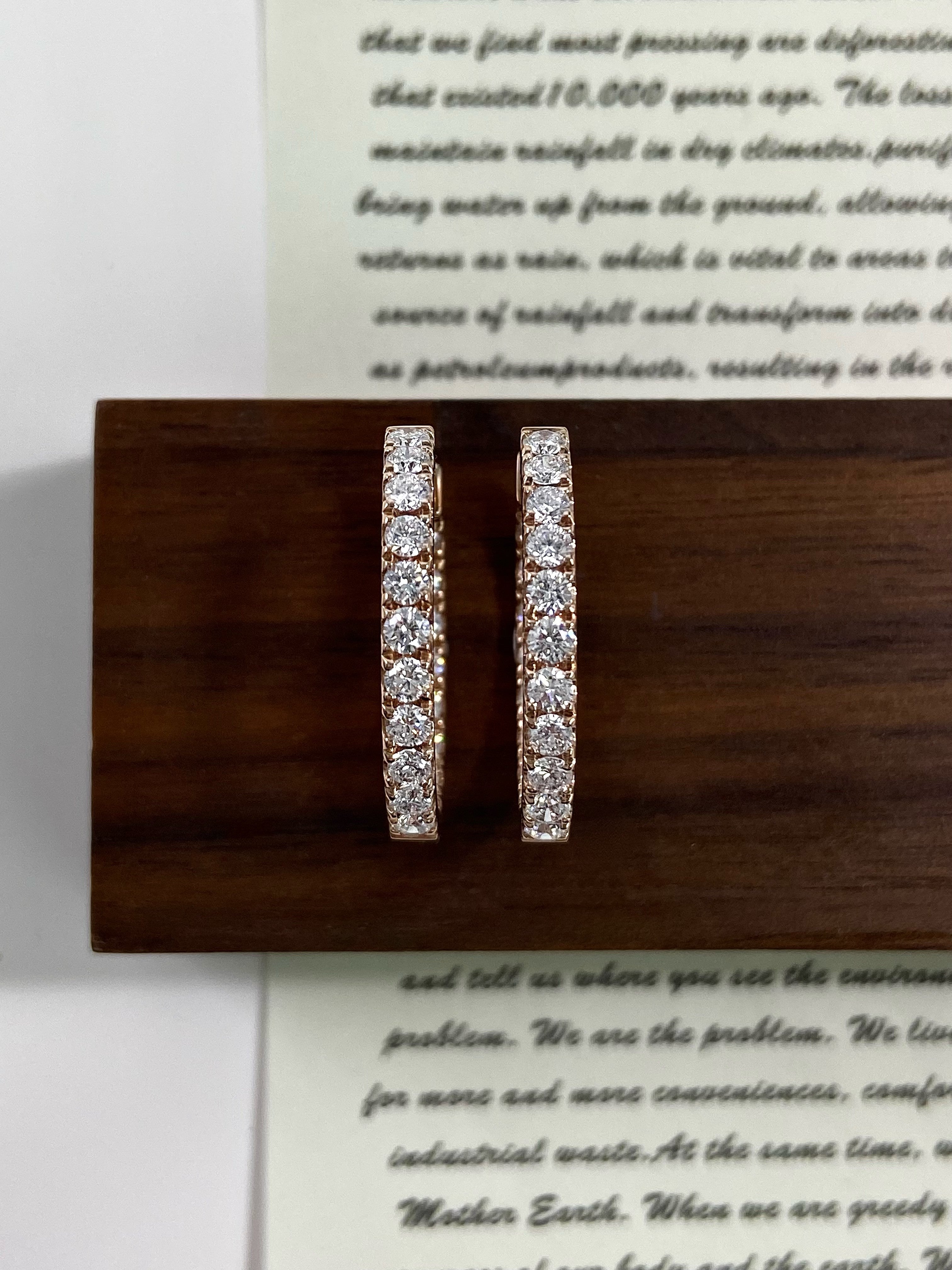 1.5 Carat 18K Rose Gold Round Lab Diamond Hoop Earrings, IGI Certificate