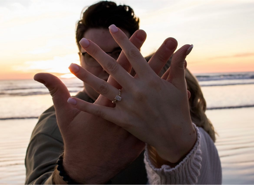 My fiancée and I flew out east to PEI to visit his family and explore the island. When we decided to make this trip in December 2021, he knew that’s where he wanted to propose to me. He secretly collaborated with our 2 best friends on which ring to get, and how to get it out to the island without me knowing. We went down to the beach to “take photos before dinner”, and as I was fussing over what I was wearing, he looked at me and said, “I think you’re missing something important for this picture”, got down on one knee, and asked me to spend the rest of our lives together when he opened the box and I saw the ring, I just about died, it was exactly what I pictured having as an engagement