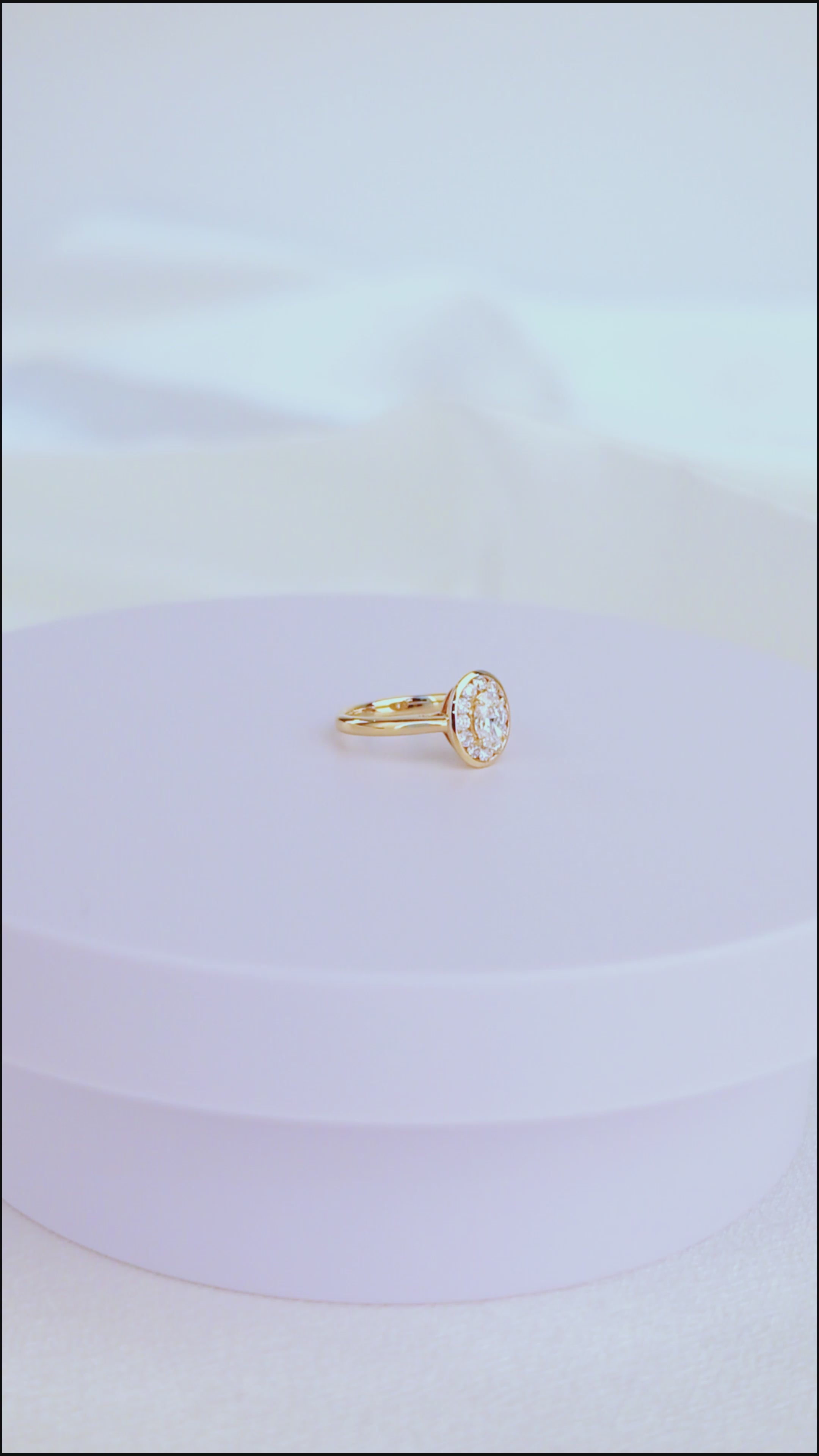 18K Yellow Gold Oval Lab Diamond Cluster Ring: Antique Style Engagement