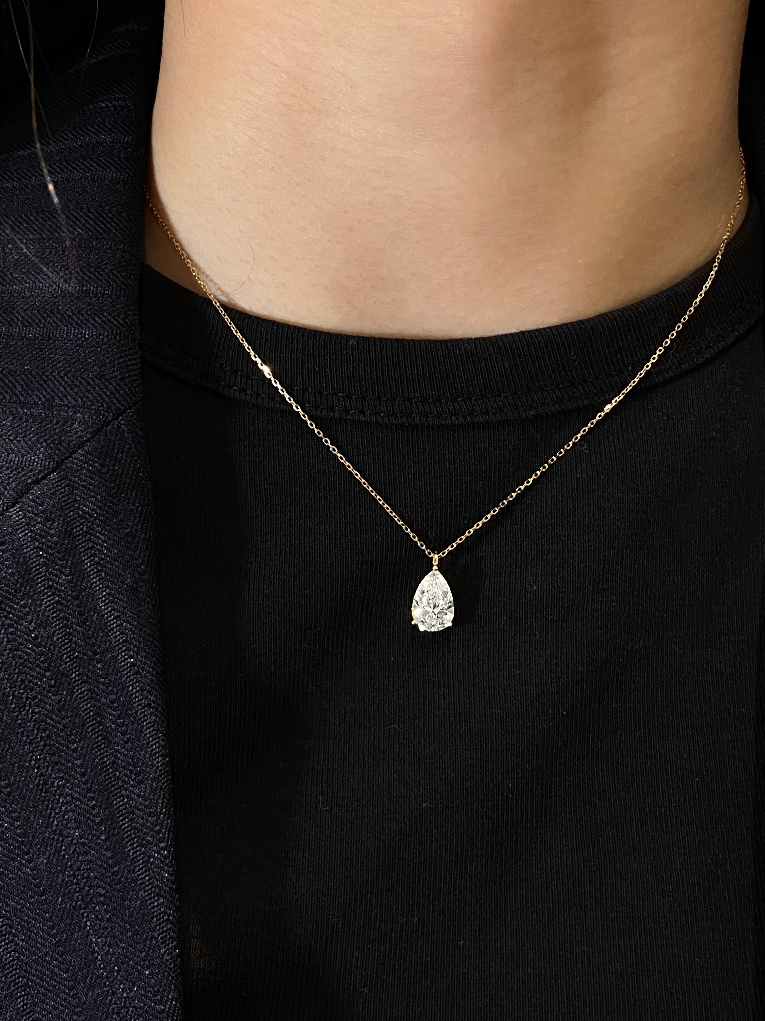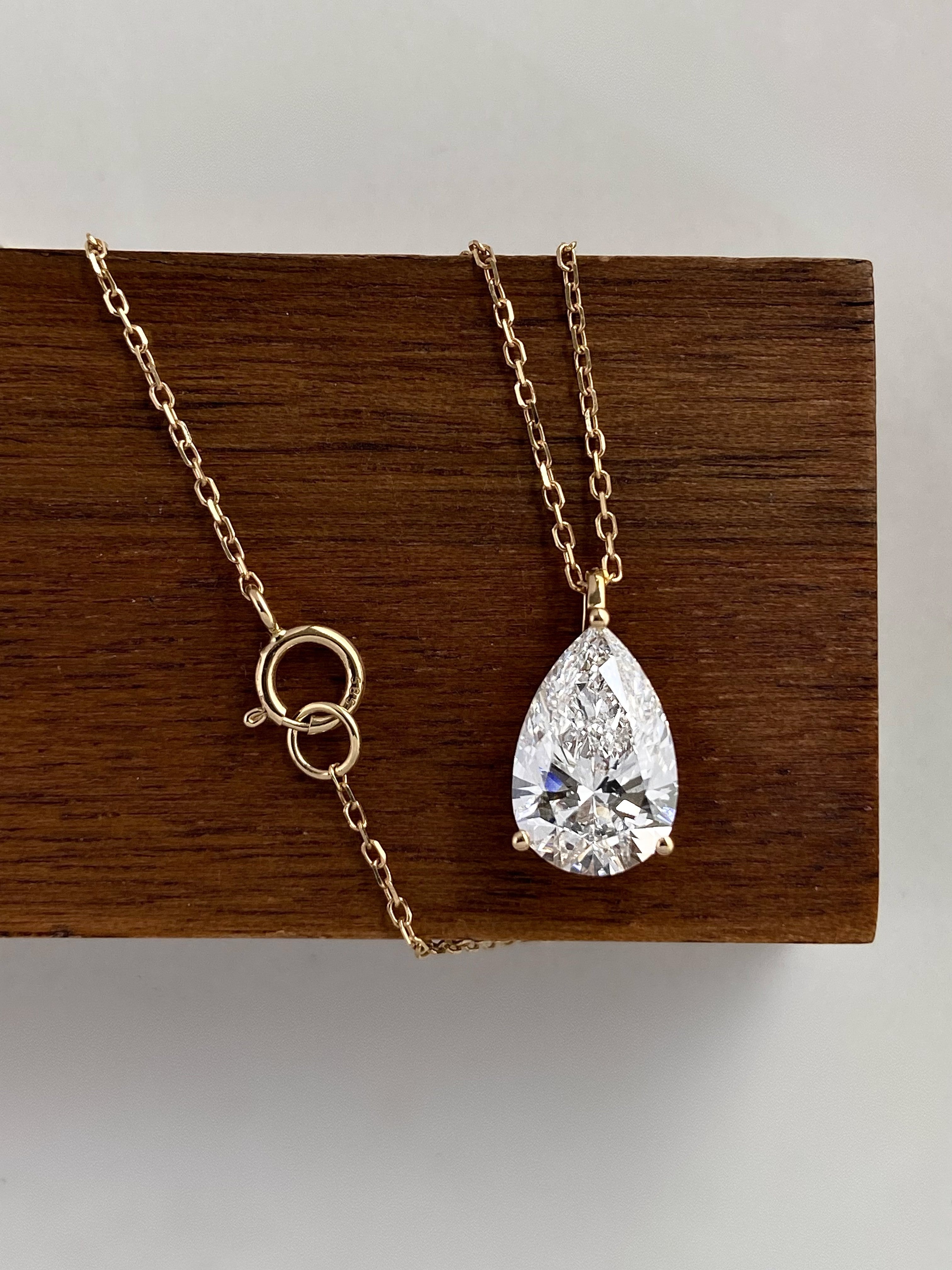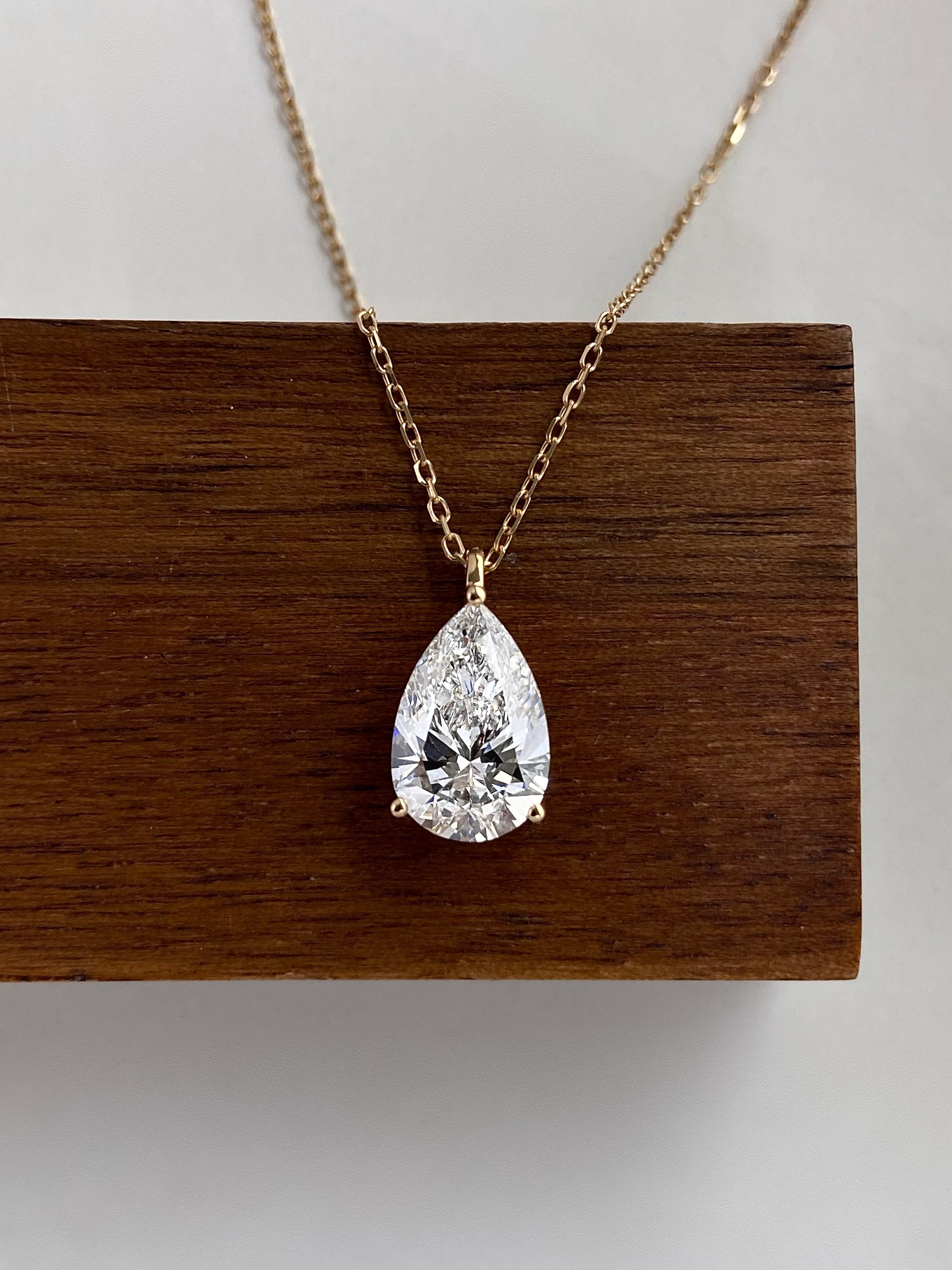 IGI CERTIFIE 2 Carat Pear Cut Lab Diamond Solitaire Engagement Pendant, 14K White Gold