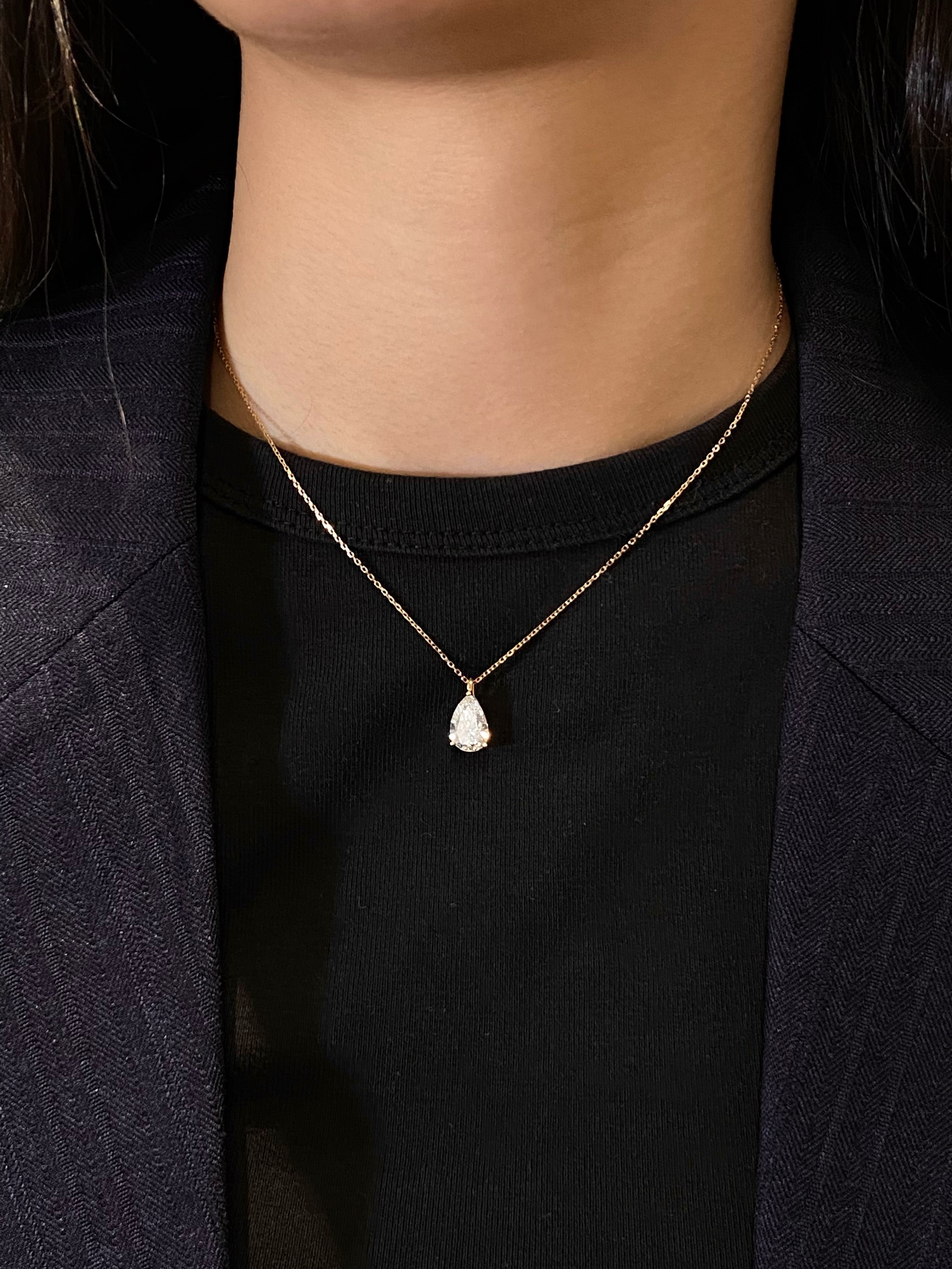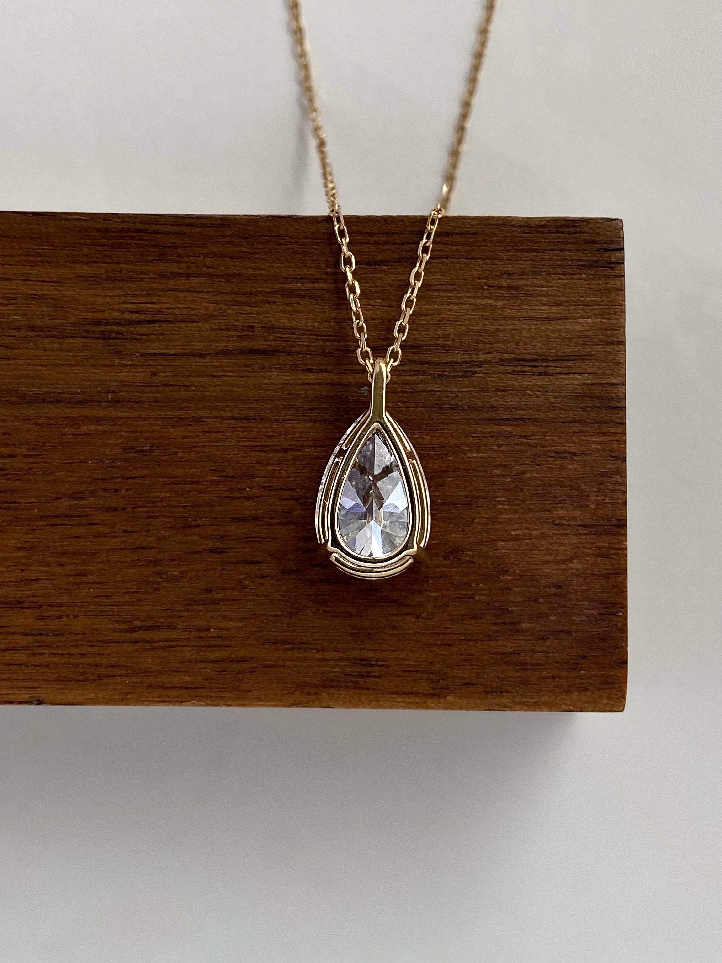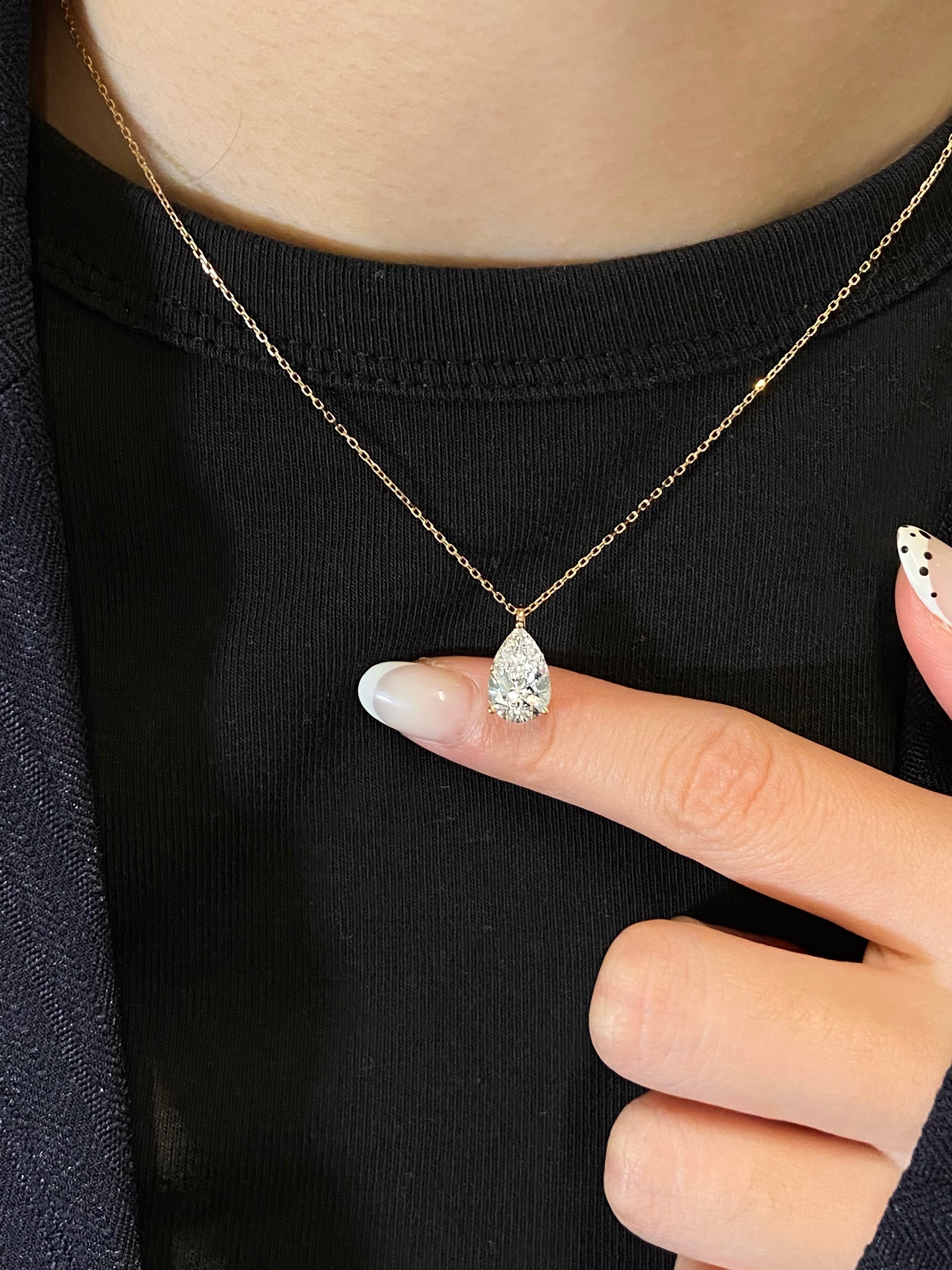 IGI CERTIFIE 2 Carat Pear Cut Lab Diamond Solitaire Engagement Pendant, 14K White Gold